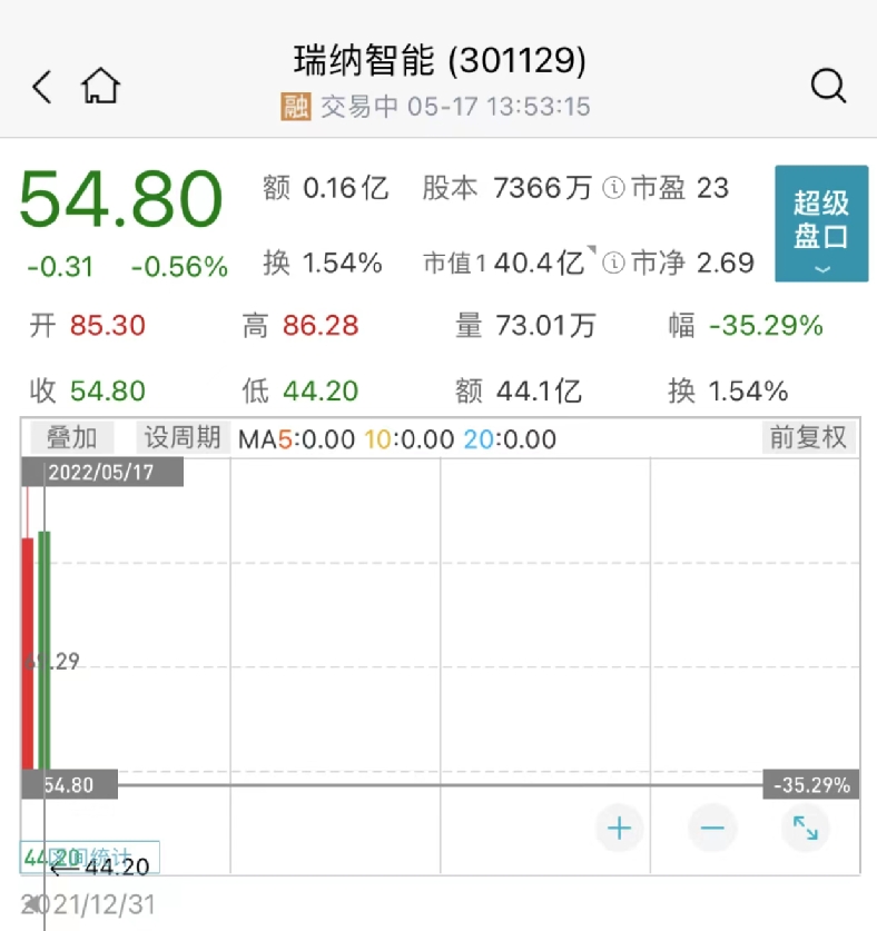 今年以来,瑞纳智能股价累计跌35%。