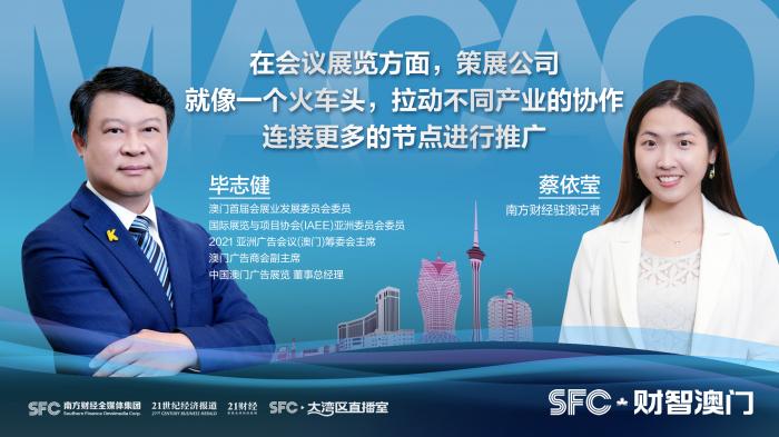 近日,澳门广告商会副主席毕志健在接受南方财经全媒体记者蔡依莹专访时表示,会展是文化传播的工具载体,让国际更了解中国,文化会展确实是最好的渠道。