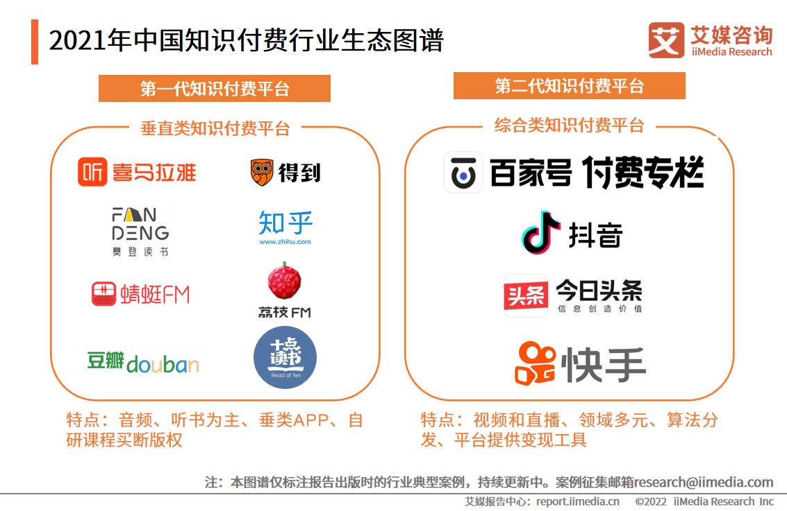 定位为“自媒体+算法”的第二代知识付费平台打破行业传统,重塑知识付费的生态链。其中,百度平台凭借其强有力的分发渠道能力和领先的技术支持等优势,通过付费专栏和训练营等模式对行业进行了新一轮的整合。