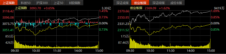 5月17日,沪指上午弱势震荡,午后小幅上扬,最后收涨0.65%报3093.7点;创业板指早盘也小幅下挫,但之后震荡上涨,最后收涨1.62%报2369.09点。关键指数飘红,但是两市个股“绿肥红瘦”,1938只个股收涨,涨停股87只;2588只个股收跌,跌停股30只。