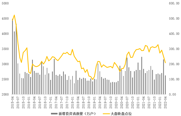 小通统计了2015年4月以来,A股新增投资者与上证指数表现:
