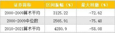 平均来看,2000-2010年区间的十年十倍股中,区间最大回撤超过70%;2011-2021区间的十年十倍股中,区间最大回撤接近60%。