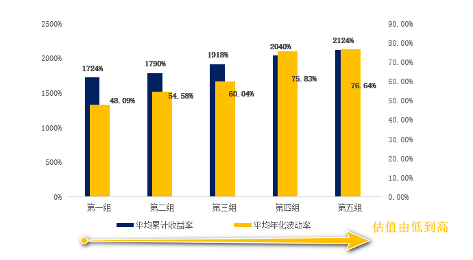 但是,从波动率的角度来看,高估值组也有着更高的波动率。