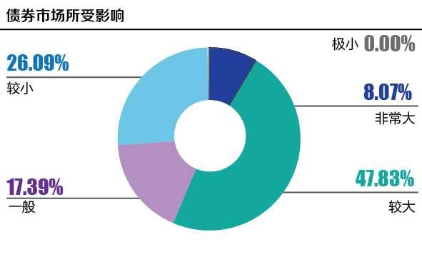 在受访者中,有56%的从业者认为这一系列违规对债券市场产生了较大的影响,有26.09%的投资经理认为带来的影响较小,有17.39%的投资经理认为影响一般。