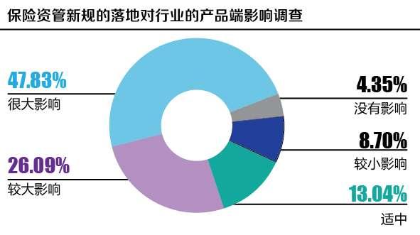 新规过渡期结束后,保险资管的资产端不仅可以面向保险机构,还可以面向年金养老金、其他符合合格投资者标准的机构与个人客户,这扩大了保险资管的客户基群。有47.83%的受访者认为这会对保险资管行业的产品端产生较大影响,有26.09%的受访者认为会有较大的影响,13.04%的采访者认为存在一些影响,仅有极少数人认为没有影响。
