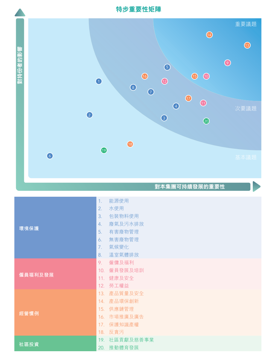 同样的,特步的ESG重要性矩阵中,环保创新、供应链管理也排在高位。