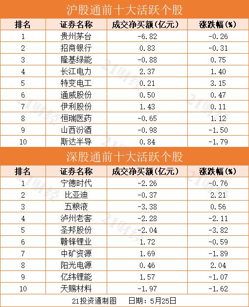 十大活跃个股方面,长江电力(600900.SH)、赣锋锂业(002460.SZ)、中矿资源(002738.SZ)获净买入居前,金额分别为2.37亿元、1.72亿元、1.69亿元。