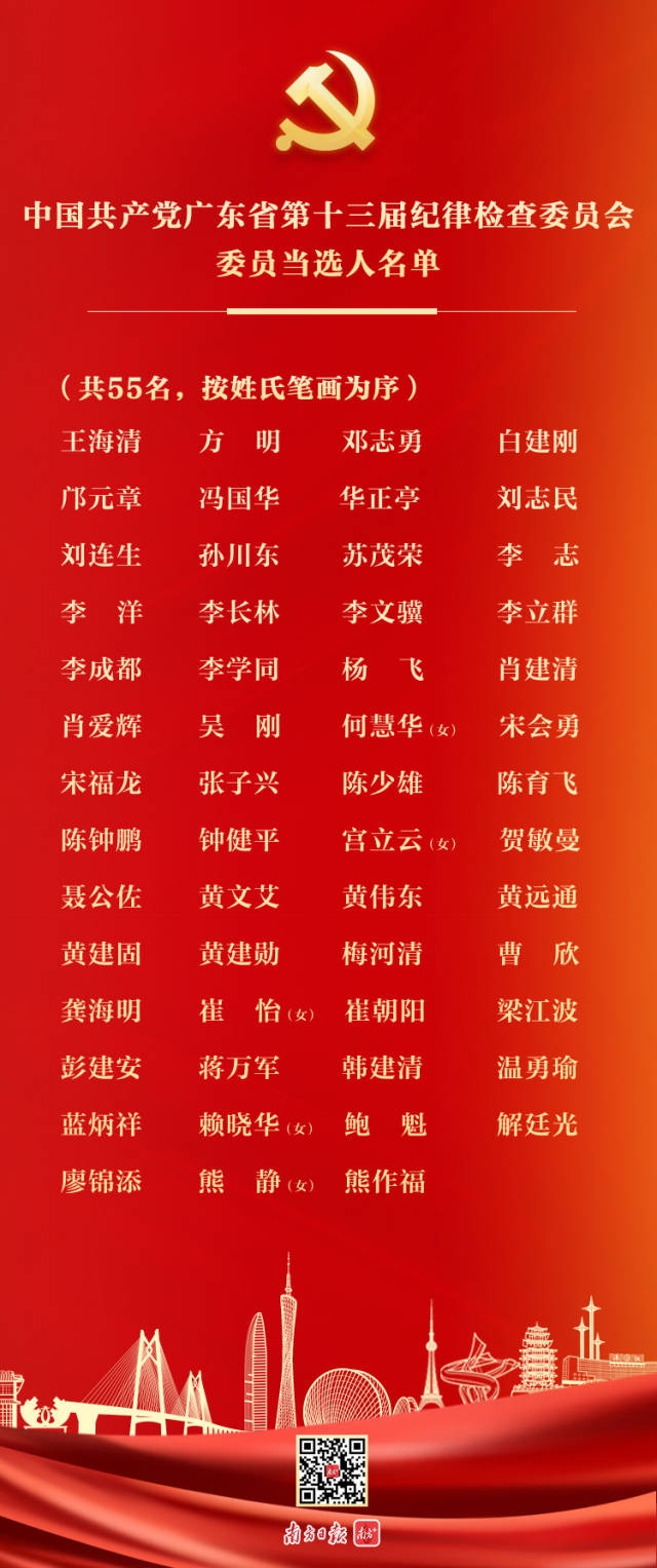 中国共产党广东省第十三届纪律检查委员会委员当选人名单