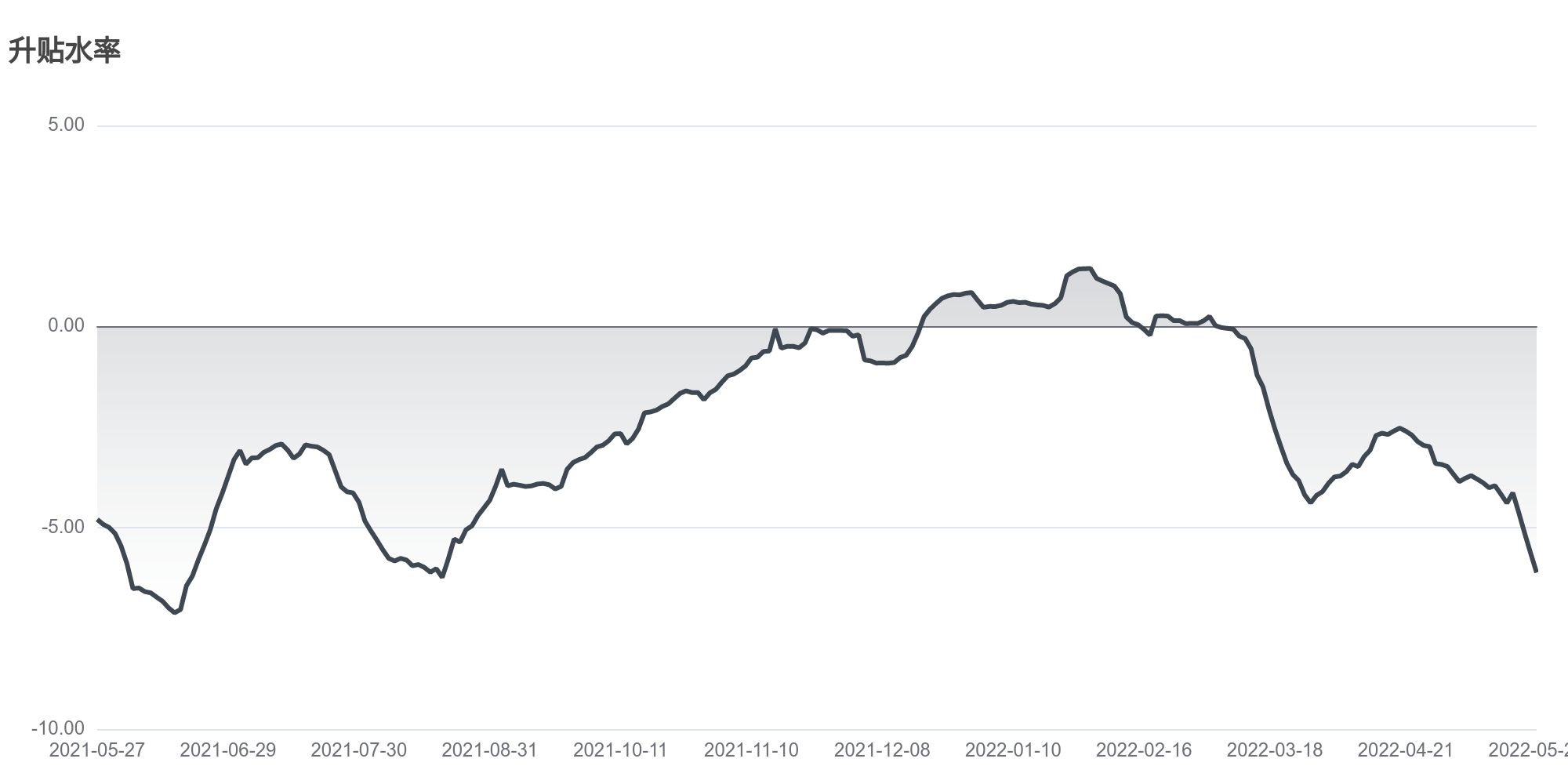 今日该指标值为-6.11%,目前该指标处于近一年较低区间,说明投资者对认为A股市场趋于触底反弹。反映期货市场投资者对市场的看法,该指标越高说明投资者认为当前市场较强,越低则说明认为市场相对较弱,因而与上证指数正相关。