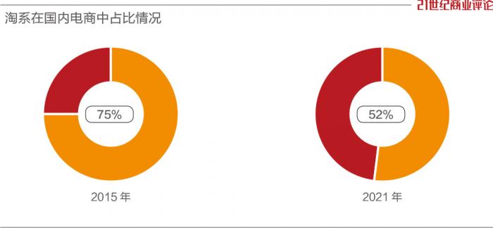 此前有媒体统计各电商GMV占比,2015年,淘系在国内电商中占比达到75%,2021年,劲敌环伺,淘系份额跌至52%。流量和“留”量,淘系都要求突破。