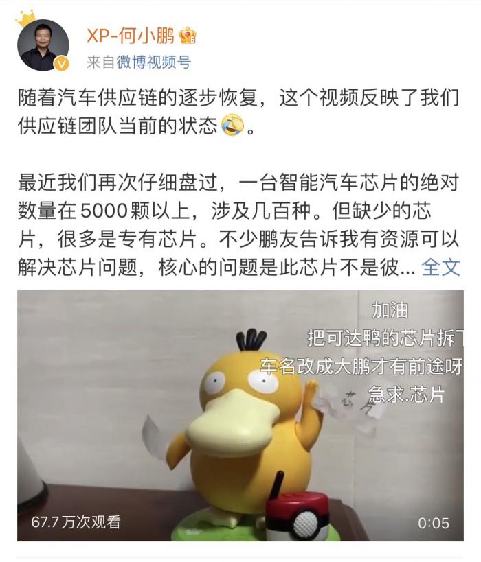 对于在社交媒体上借可达鸭求芯片一事,何小鹏表示,一些政府机构主动联系表示可提供帮助,目前正在沟通。但也有一些人以上千元的价格提供成本仅个位数的芯片,“他们报价3000、2700、2500元,但进价成本才3.5元、7元,给芯片商加了几百倍的价格。”