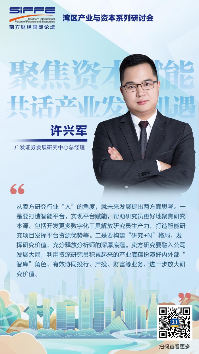 在谈到券商研究自身发展时,许兴军认为当下整个卖方行业越来越激烈,大家可以共同审视自己所在的行业,去探索一些新的发展机遇。
