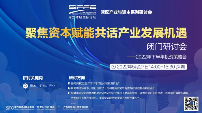 南方财经全媒体 见习记者欧雪 深圳报道 5月27日,由南方财经全媒体集团、21世纪经济报道与广东粤港澳大湾区研究院联合主办的“聚焦资本赋能,共话产业发展机遇”闭门研讨会在深圳以线下+线上视频方式召开。