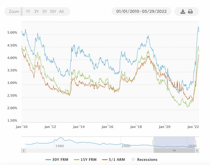 根据美国住房抵押贷款金融巨头房地美(Freddie Mac)公布的数据,随着近期美债收益率有所回落,美国30年期抵押贷款平均利率小幅回落至5.10%,但仍远高于去年年底的3.11%,依旧处于十多年来的高位。