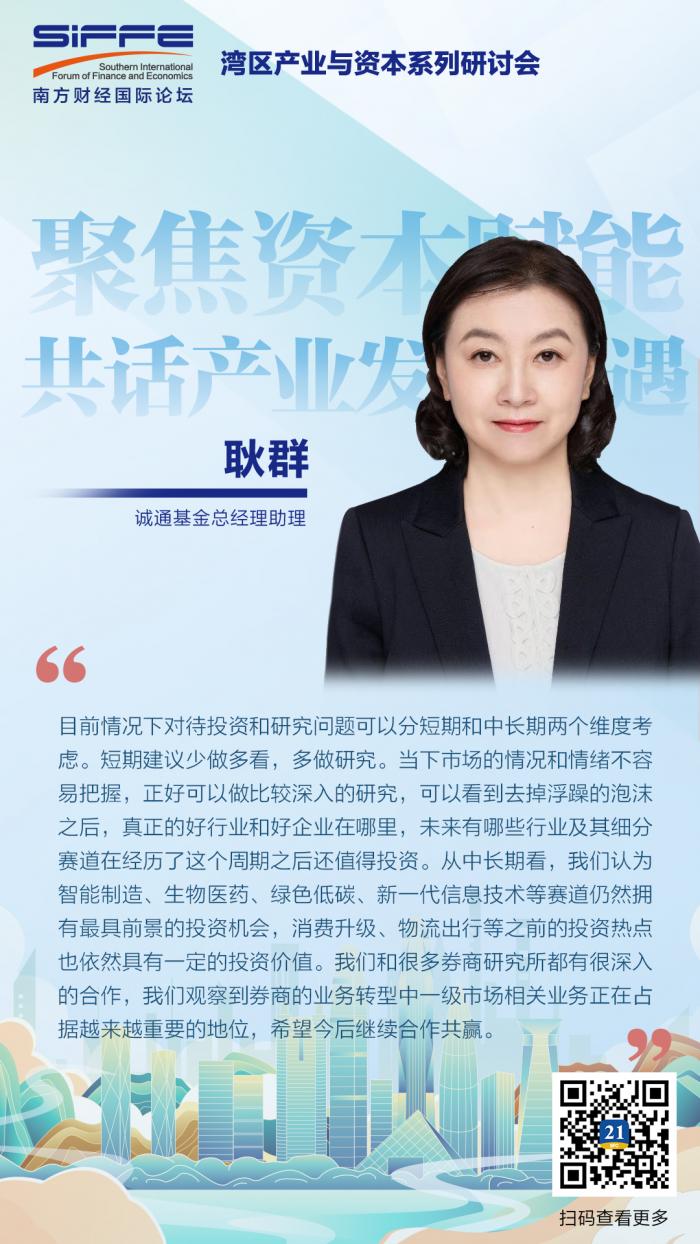 5月27日,由南方财经全媒体集团、21世纪经济报道与广东粤港澳大湾区研究院联合主办的“聚焦资本赋能,共话产业发展机遇”闭门研讨会在深圳以线下+线上视频方式召开。本次闭门会诚挚邀请基金公司、证券公司、银行理财子公司等机构,与市场各方共同探讨如何深耕产业研究,赋能资本服务价值链,共话2022年下半年投资策略。