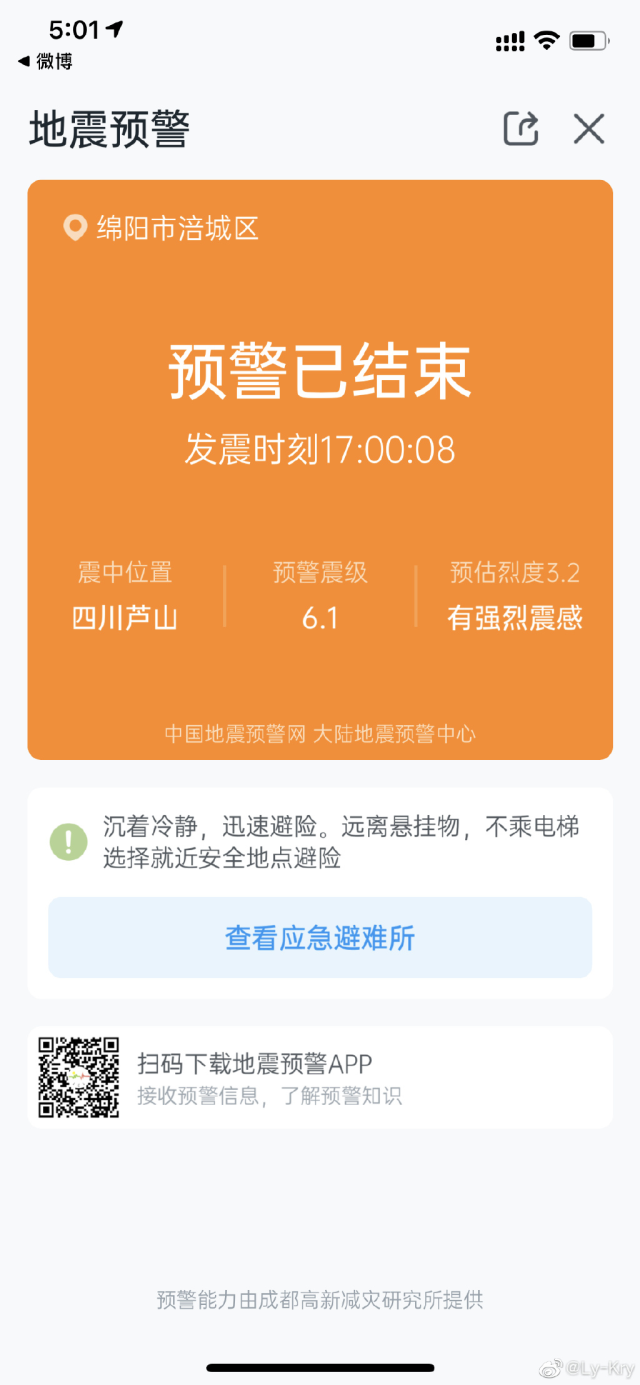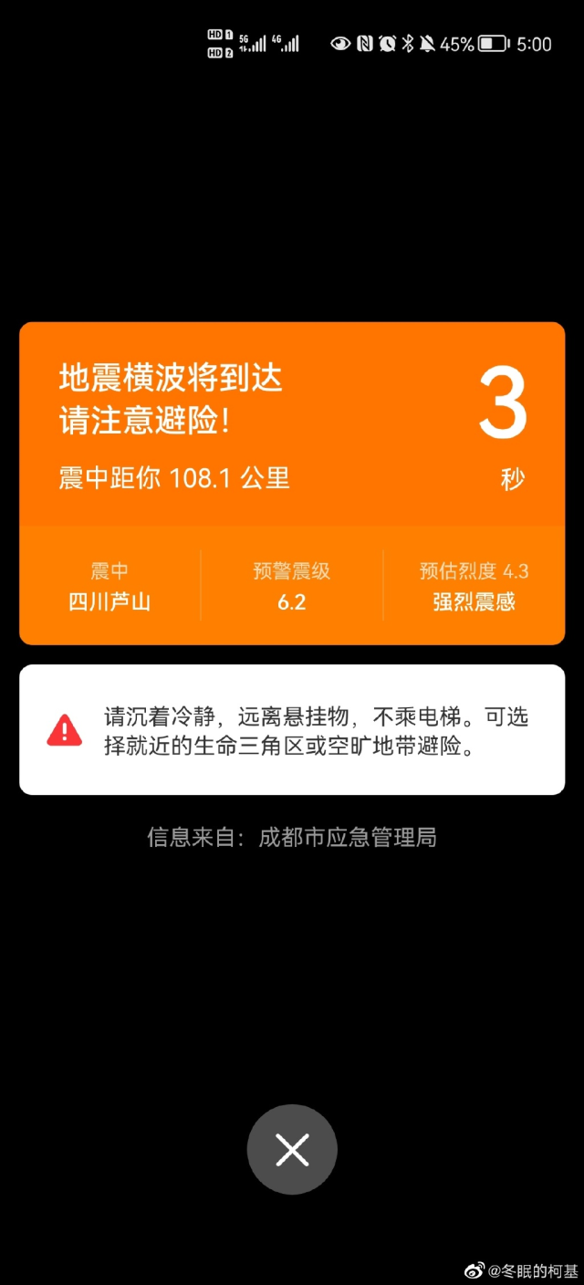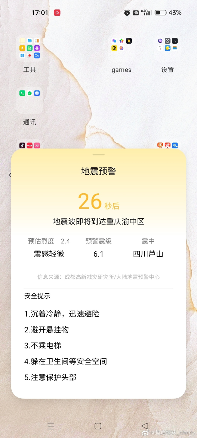 多地网友手机收到地震预警
