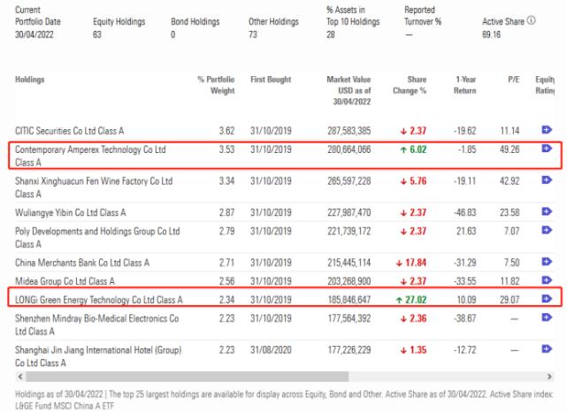 安联神州A股基金公布截至4月底的数据显示,宁德时代、隆基绿能均获其大量加仓,其中,隆基绿能环比增持幅度达27.02%,最新持股市值达1.86亿美元,宁德时代获增持6.02%持仓股份,持股市值为2.81亿美元。