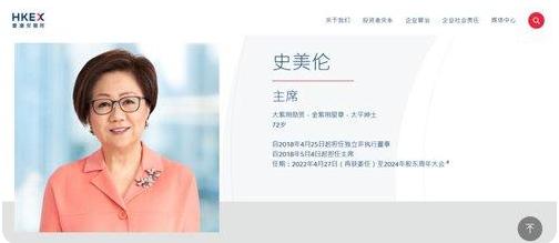 此次获聘的史美伦,现任香港交易及结算所有限公司主席。2001年2月,被称为股市“铁娘子”的史美伦出任中国证监会副主席,分管上市和融资监管工作。
