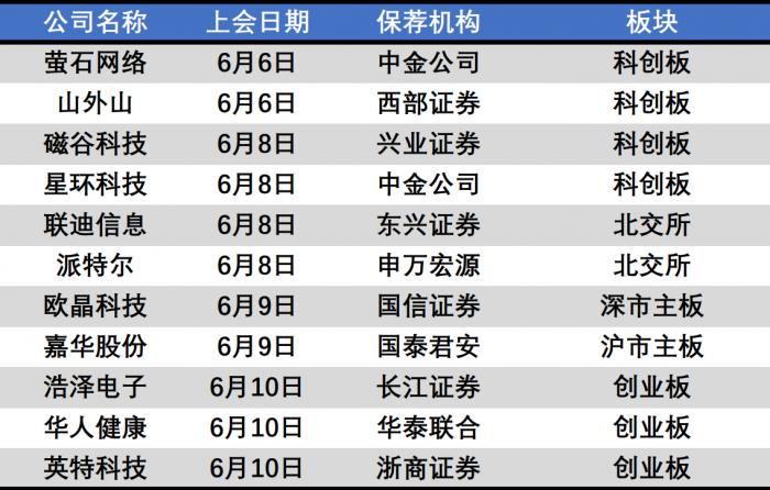 此外,本周(6月6日至6月10日)共计11家企业拟上会,科创板4家,创业板3家,沪市主板1家,深市主板1家,北交所2家。