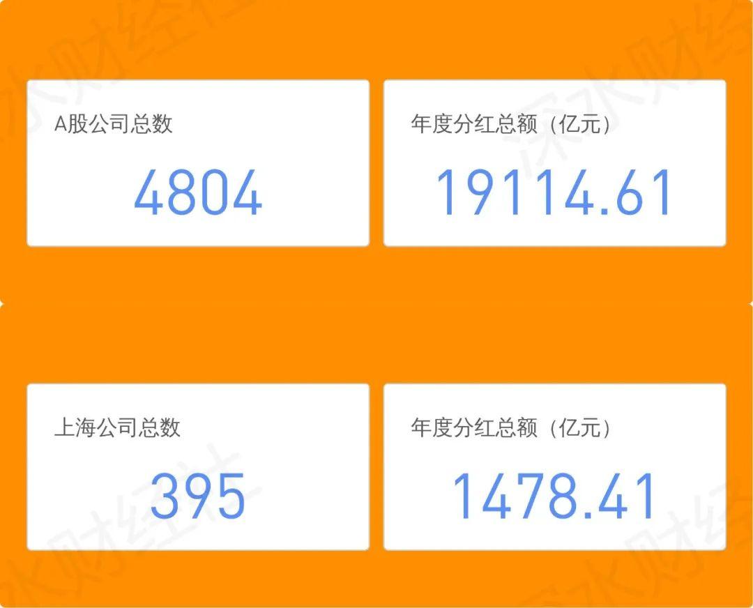 2021年A股4804家合计现金分红达到1.91万亿,其中上海395家公司合计现金分红1478.41亿。