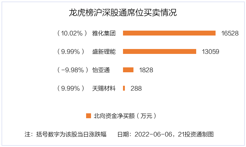 6月6日,北向资金参与龙虎榜中的个股共有4只,合计净买入3.17亿元,均为深股通参与。