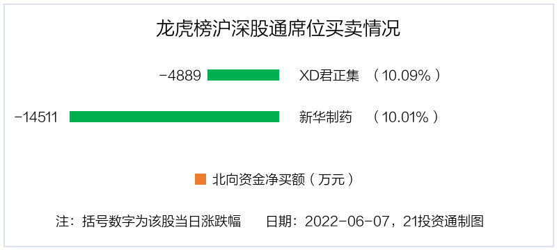 6月7日,北向资金参与龙虎榜中的个股共有2只,合计净卖出1.94亿元。其中沪股通净卖出1 股,金额为4889.49万元;深股通净卖出1股,金额为1.45亿元。