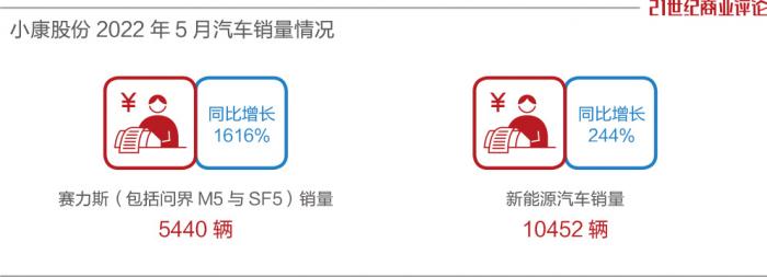 在问界M5带动下,今年5月,小康股份新能源汽车销量首次超越燃油车,实现销量10452辆,同比增长244%。