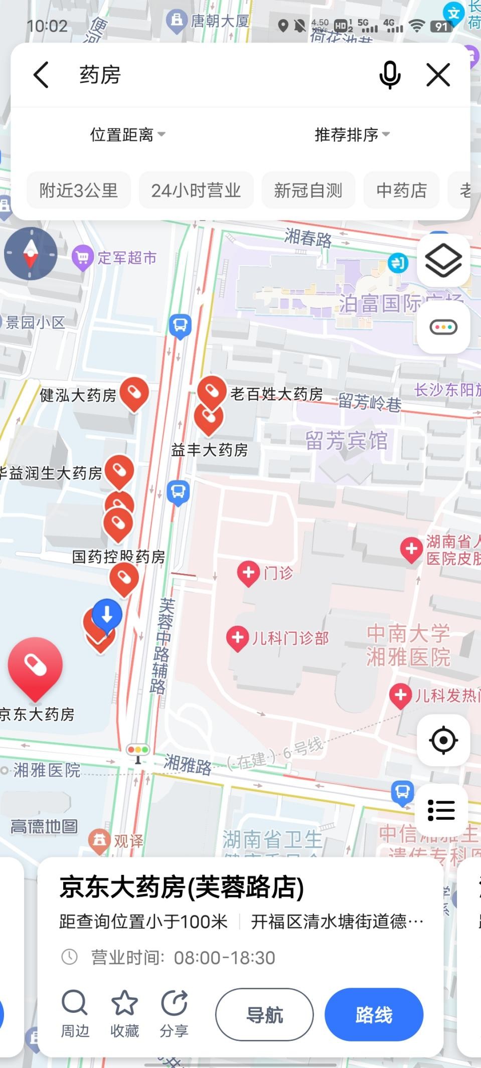因此,中南大学湘雅医院附近一街之隔,密集分布着包括京东、阿里健康、圆心科技等互联网医疗企业的实体药房,和老百姓、益丰、达嘉维康等传统药房、DTP药房品牌的门店,总数接近20家。抢占院外处方药的地缘竞争之大,可见一斑。