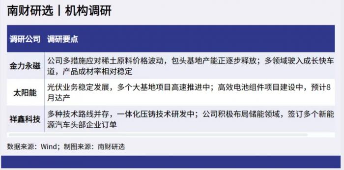 调研来源金力永磁2022年6月2日投资者关系活动记录表;太阳能2022年6月1日投资者关系活动记录表;祥鑫科技2022年6月6日投资者关系活动记录表。