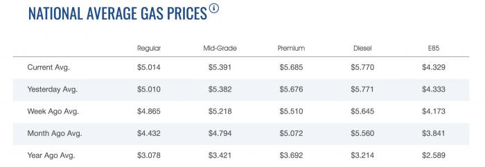 美国汽车协会(AAA)数据显示,美国汽油平均价格史上首次超过每加仑5美元,而一年前仅为3.078美元。美东时间6月13日,美国汽油价格再创新高,平均价格为5.014美元。加州汽油价格更是高达每加仑6.436美元,为全美最高。