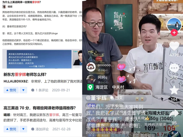 这个“小嘴叭叭”的主播(人家可是巧舌如簧的双语主播),大学没毕业就去新东方当了老师,据说工作至今他教过的学生超过50万,去知乎搜一搜董宇辉这个名字,多半都是董老师的推荐帖。