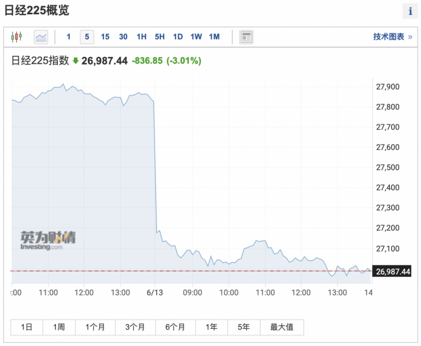 在亚洲市场中,首当其冲的便是日本。6月13日,日本资本市场上演了一场惨烈的“股、债、汇三杀”。