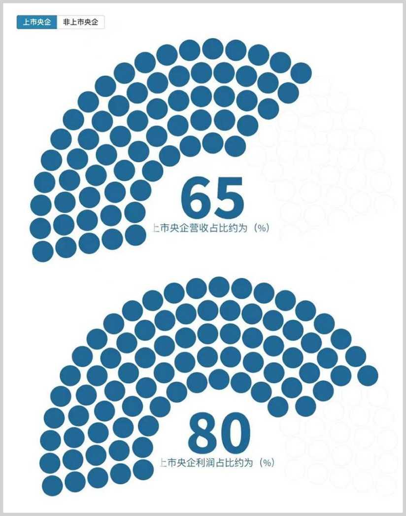 上市央企是国民经济的重要骨干和中坚力量。根据今年5月国资委会议上披露的数据,上市央企贡献约65%的营业收入和80%的利润总额,中央企业共控股境内外上市公司超过440户,其中境内超过350户,是我国资本市场的重要组成部分。