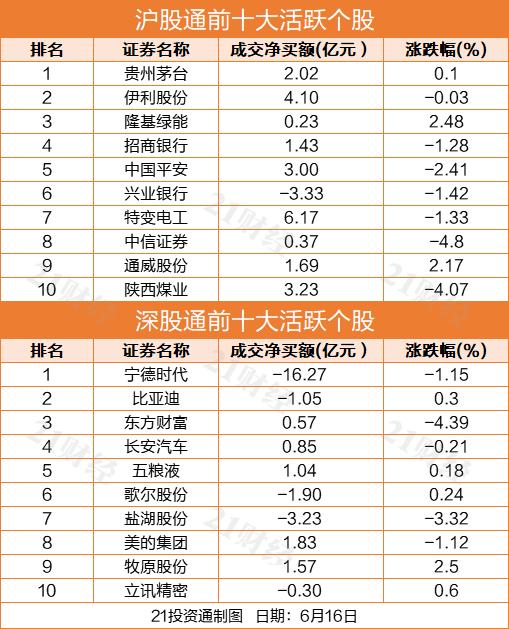 十大活跃个股方面,特变电工(600089.SH)、伊利股份(600887.SH)、陕西煤业(601225.SH)获净买入居前,金额分别为6.17亿元、4.10亿元、3.23亿元。