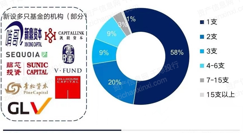 2021年,共计3938家机构参与新设基金,其中超四成机构设立多支基金,两成左右机构设立基金3支及以上。设立多支基金的机构包括新鼎资本、红杉中国、临芯投资等。