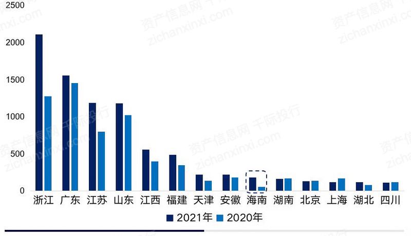 2021年浙江省新设基金1846支,同比提升45%,广东省新设基金1432支,同比下降1%。