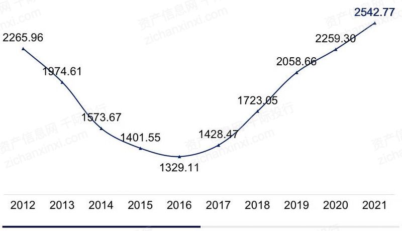 图 2012年-2021年中国VC/PE投资市场单笔均值趋势