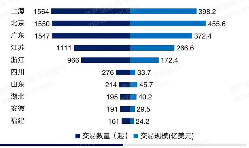 图 2021年中国VC/PE前十大活跃地区交易概况(省级)