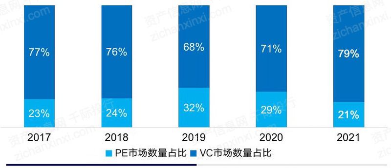 图 2017年-2021年中国VC/PE市场投资数量占比