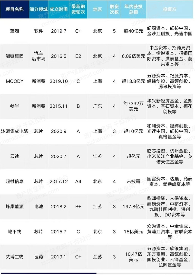 图 2021年中国VC/PE市场最受GP关注项目之融资最多TOP10