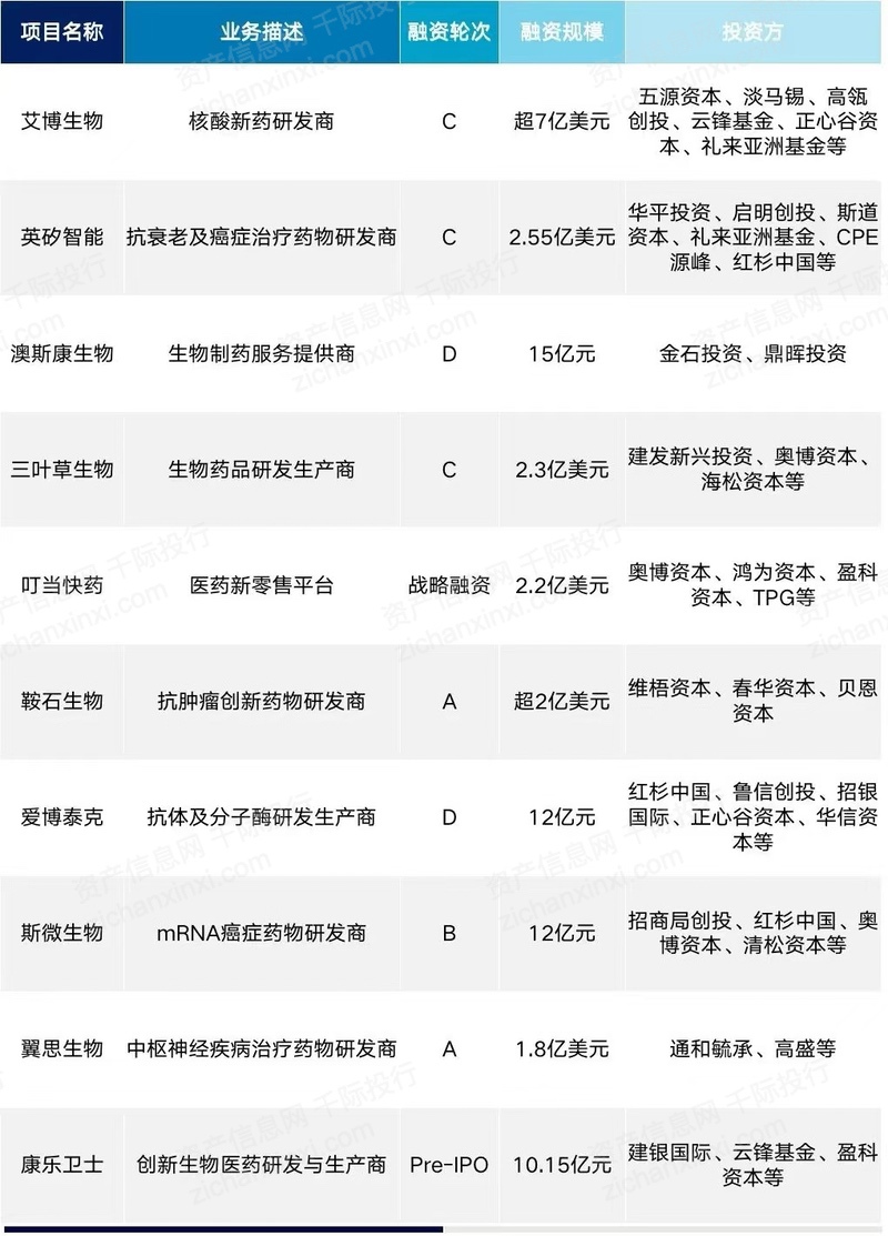 图 2021年中国VC/PE市场医药赛道重点融资案例