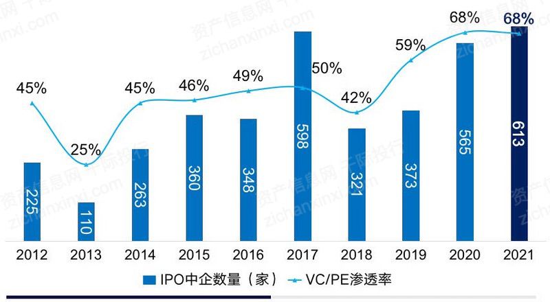 图 2012年-2021年IPO方式退出VC/PE渗透率