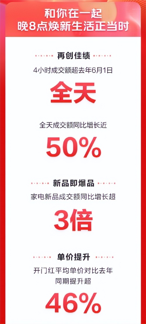 京东的数据说,618开门红4小时,中高端家电产品成交额超去年全天;平均单价比去年同期提升超46%。