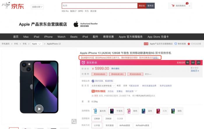 京东618火力全开!iPhone 13到手4898元 开通A+会员还有更多专属好价