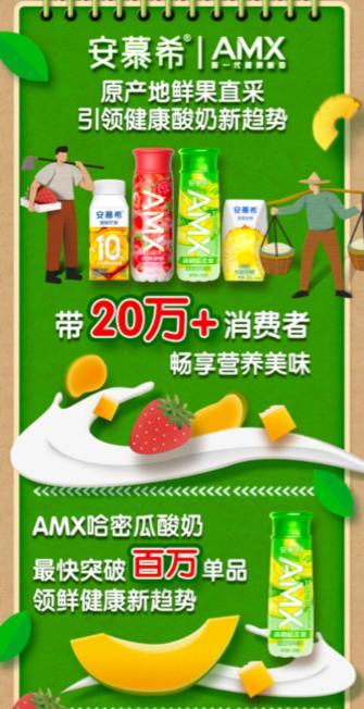 此外,伊利推出安慕希&AMX 水果系列产品,采用原产地水果,为超过20万消费者送上健康营养本味。其中,AMX哈密瓜酸奶成为最快销售百万的单品,AMX丹东草莓酸奶,领跑京东0蔗糖酸奶赛道。