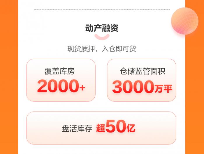 618是一年中销售需求最旺盛的时期之一,品牌经销商都会下大力气增加备货量和推广投入,而这将占用他们非常大的现金流。如何盘活库存,加速资金周转?京东供应链金融科技打造动产融资产品,现货质押,入仓即可贷,为商家提供方便快捷的线上融资服务。618活动期间申请并开通动产融资产品,可获得最低至7折利率优惠券;老客最低至7.5折利率优惠。618期间动产融资覆盖库房2000+、仓储监管面积3000万平、盘活库存超50亿。
