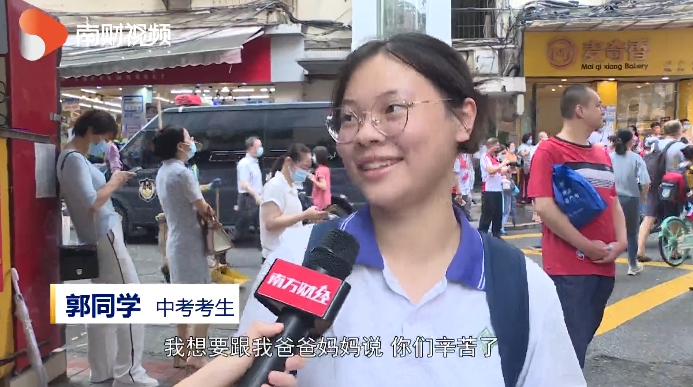 有一点点紧张,但是都还行,我想要跟我爸爸妈妈说,你们辛苦了。我要跟我的弟弟说,我爱你。跟我的外婆说,你辛苦了。我会好好考的,不会让你们失望的。省实越秀,等我!