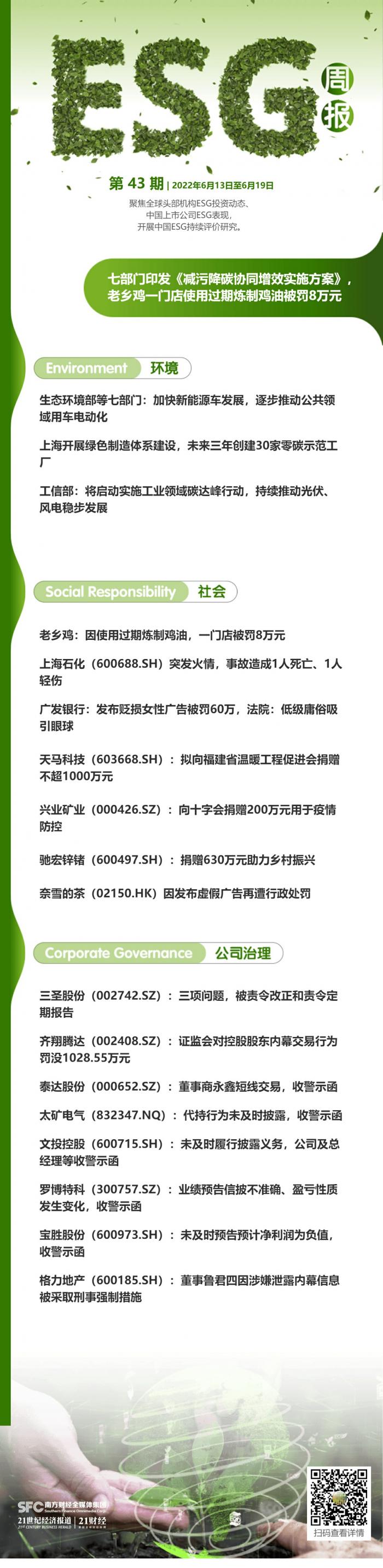 6月17日,生态环境部等七部门印发《减污降碳协同增效实施方案》指出,加快推进“公转铁”“公转水”,提高铁路、水运在综合运输中的承运比例。发展城市绿色配送体系,加强城市慢行交通系统建设。加快新能源车发展,逐步推动公共领域用车电动化,有序推动老旧车辆替换为新能源车辆和非道路移动机械使用新能源清洁能源动力,探索开展中重型电动、燃料电池货车示范应用和商业化运营。到2030年,大气污染防治重点区域新能源汽车新车销售量达到汽车新车销售量的50%左右。加快淘汰老旧船舶,推动新能源、清洁能源动力船舶应用,加快港口供电设施建设,推动船舶靠港使用岸电。