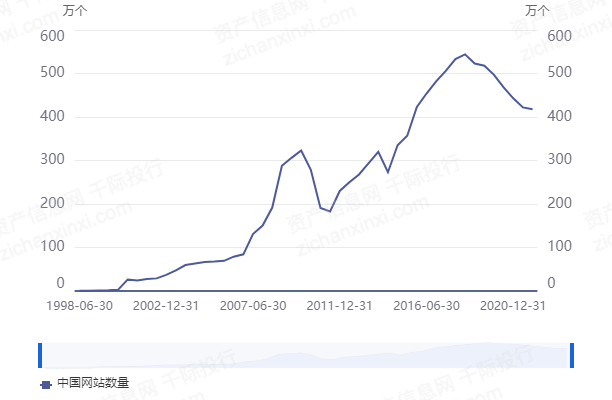 自1998年以来,随着互联网行业在中国的快速发展,中国的网站数量也在随之增加。在2018年达到544万个网站后,中国网站数开始减少,到2021年初数量减少到约430万个网站。