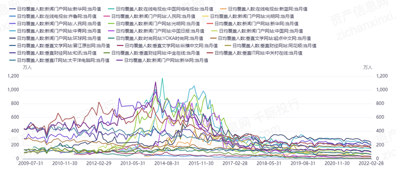 根据指数市场变化,近一年中,门户网站的指数点位从1618点下降到了不足1100点。